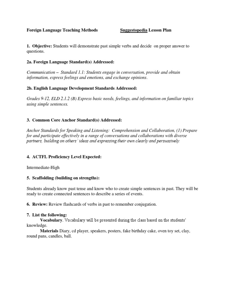 Foreign Language Teaching Methods Suggestopedia Lesson Plan