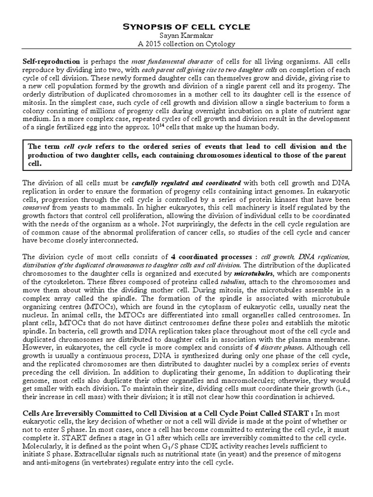 Self-reproduction is perhaps the most fundamental character of cells for all living organisms. All cells
