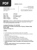 • Intermediate (12) CBSE board with 61% marks from Pinewood residential school,