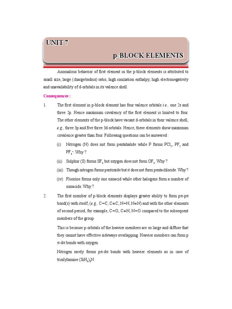 1. The rst element in p-block element has four valence orbitals i.e., one 2s and