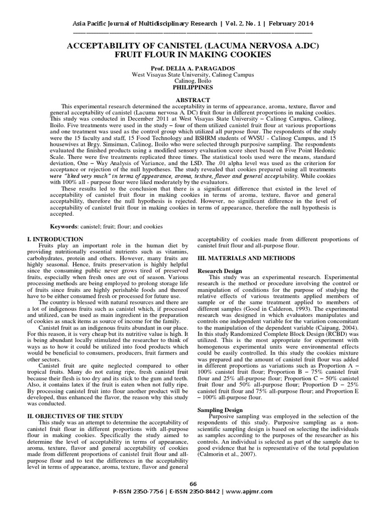 presented below. Mean ratings for the acceptability of Canistel Fruit Flour