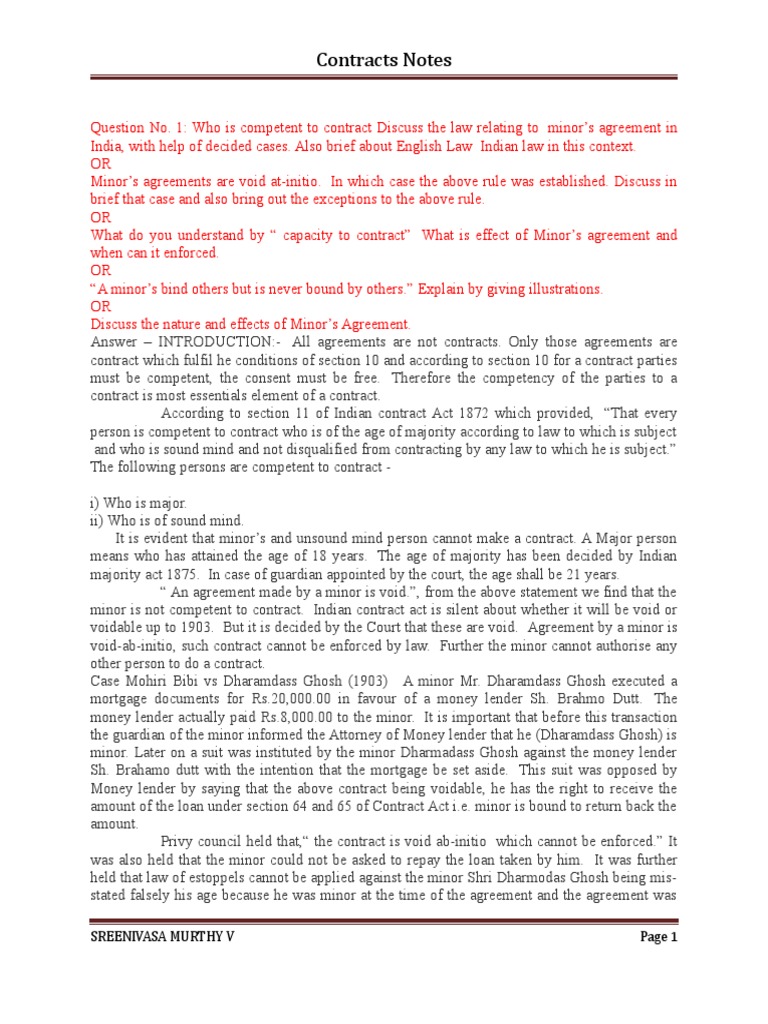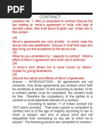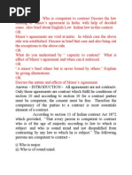 Question No. 1: Who is competent to contract Discuss the law relating to minor’s agreement in
