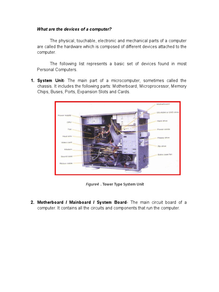 1. System Unit- The main part of a microcomputer, sometimes called the