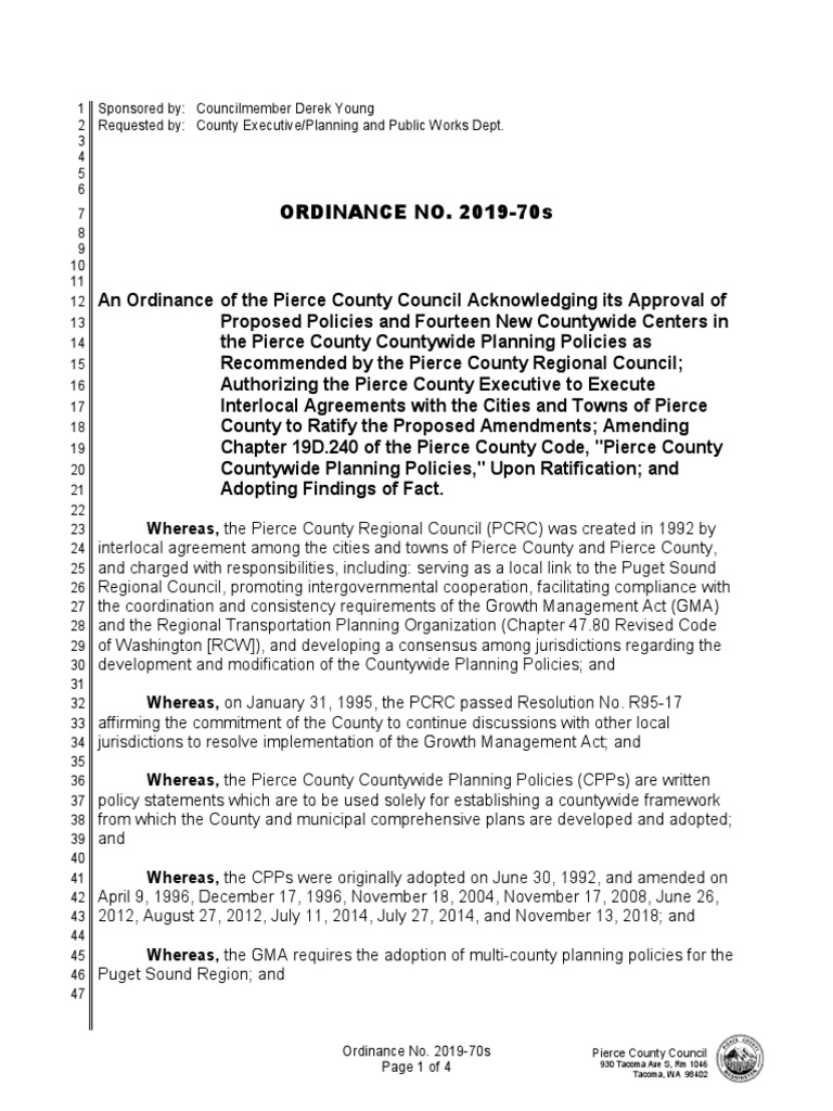 19D.240 of the Pierce County Code (PCC), "Pierce County Countywide Planning