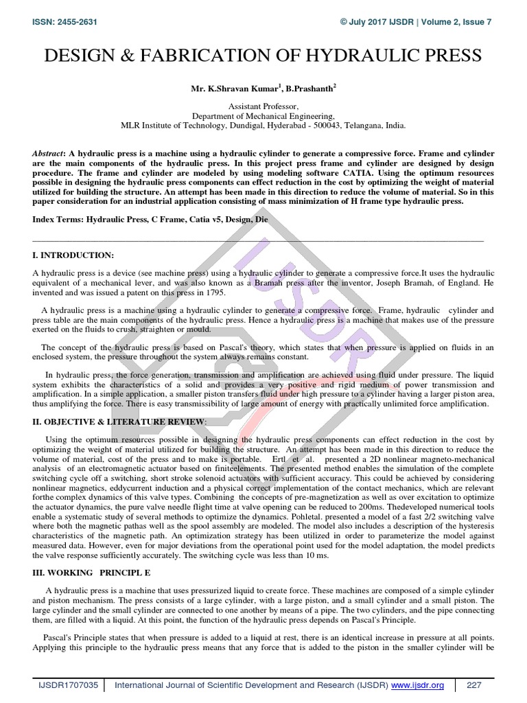 Index Terms: Hydraulic Press, C Frame, Catia v5, Design, Die