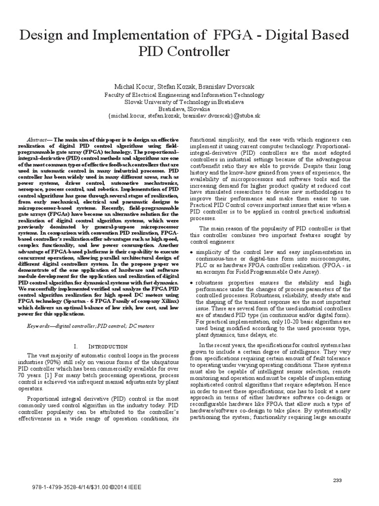 gate arrays (FPGAs) have become an alternative solution for the PID controller is to be applied in control practical industrial