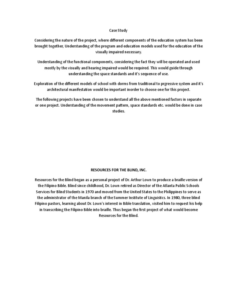 or one project. Understanding of the movement pattern, space standards etc. would be done in case