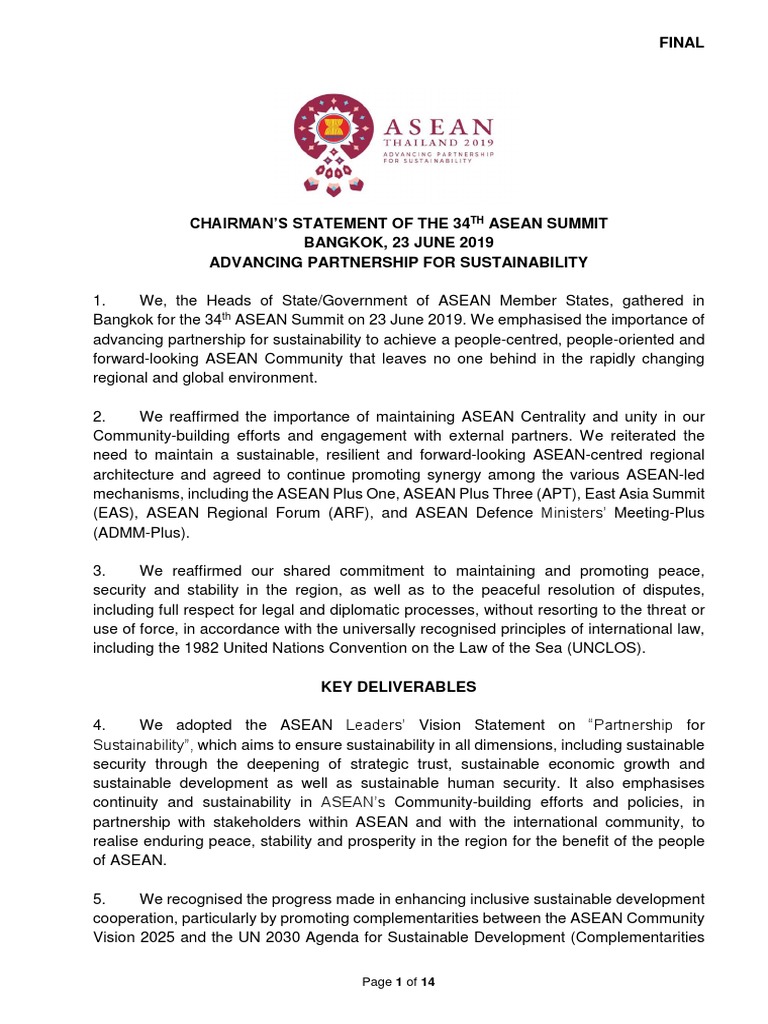 engagement and cooperation in the wider Indo-Pacific region. We reaffirmed ASEAN