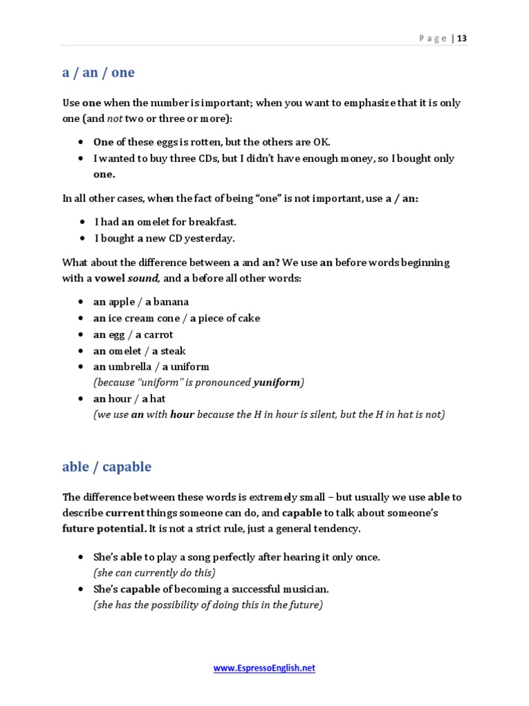 with a vowel sound, and a before all other words: