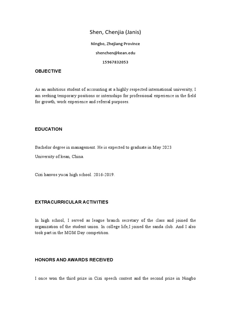 I once won the third prize in Cixi speech contest and the second prize in Ningbo