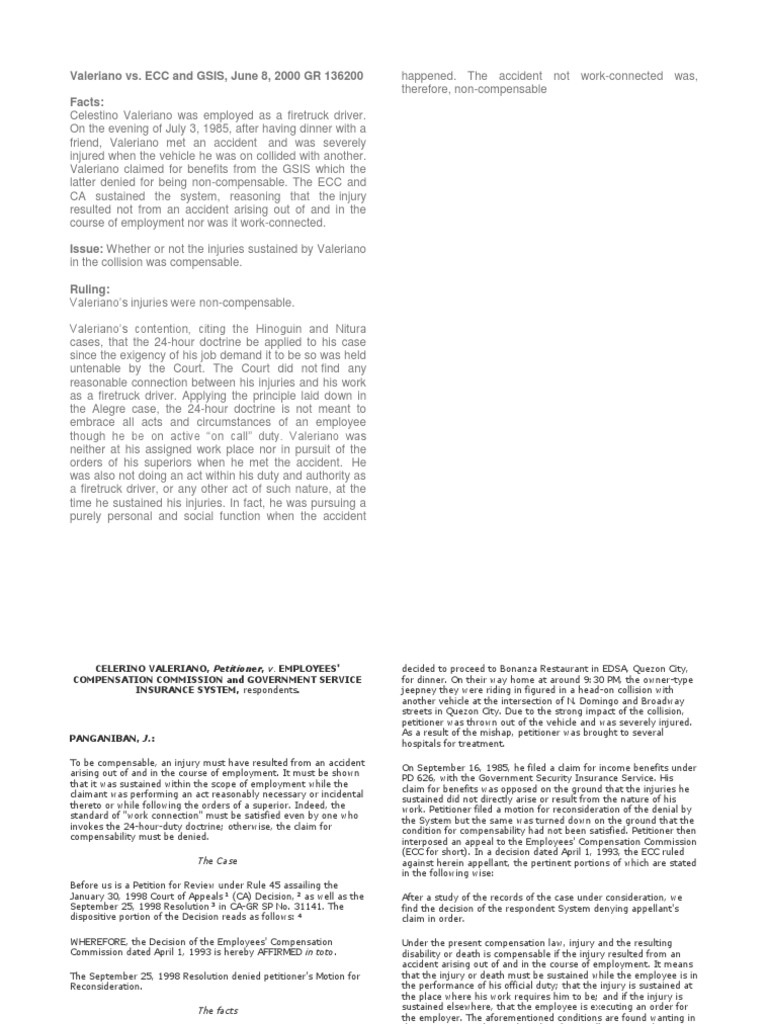 Valeriano vs. ECC and GSIS, June 8, 2000 GR 136200 happened.