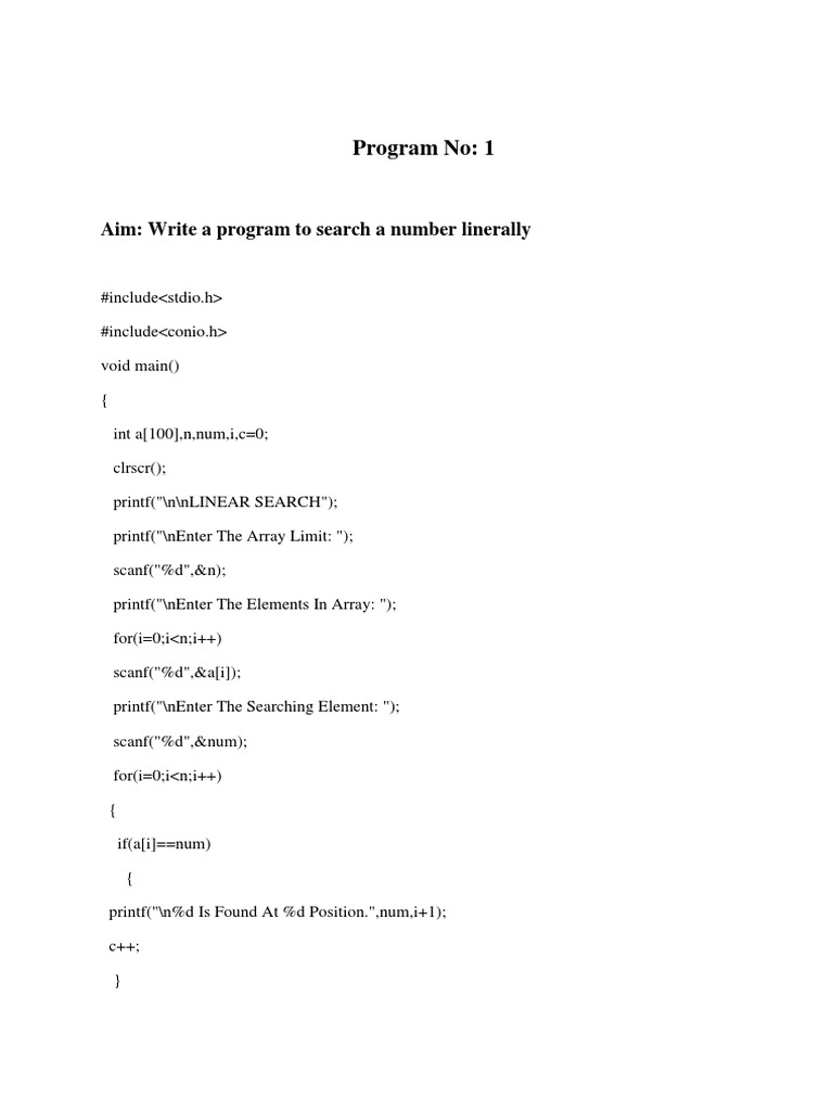 Aim: Write a program to search a number linerally