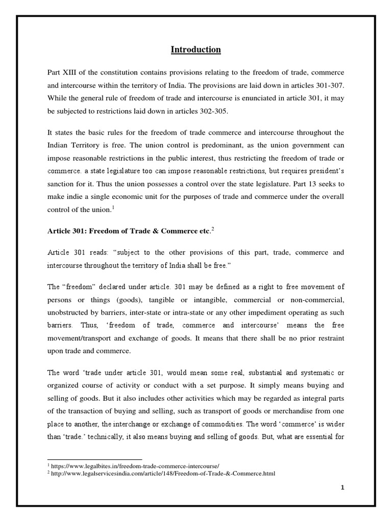 and intercourse within the territory of India. The provisions are laid down in articles 301-307.