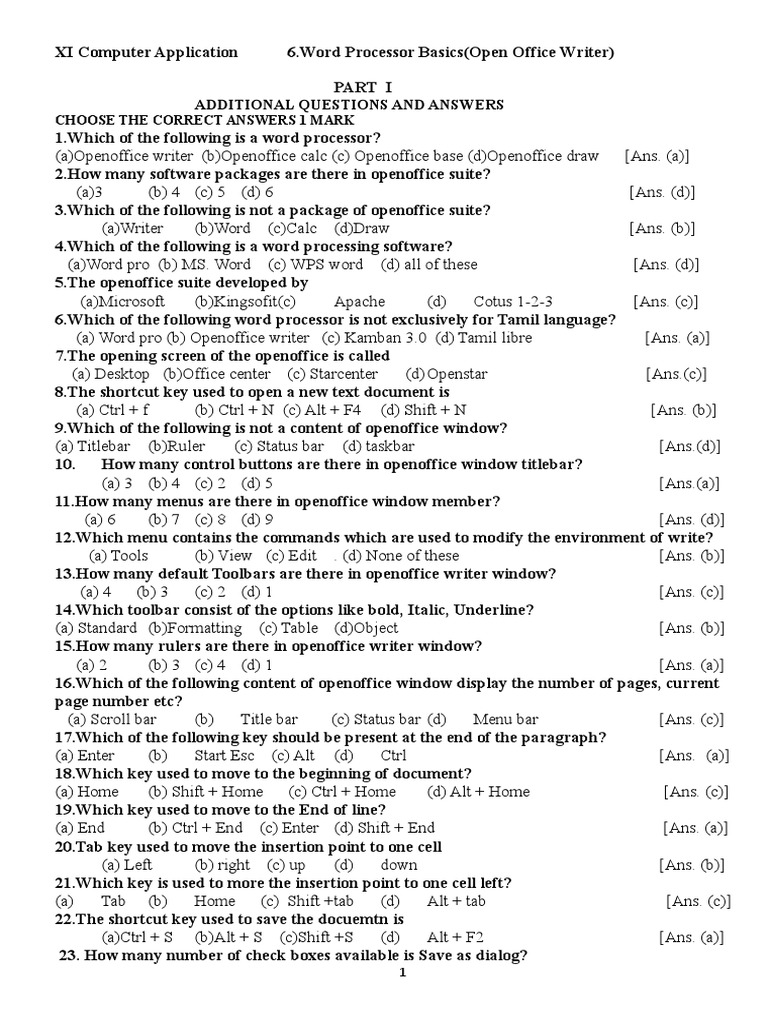 XI Computer Application 6.Word Processor Basics(Open Office Writer)