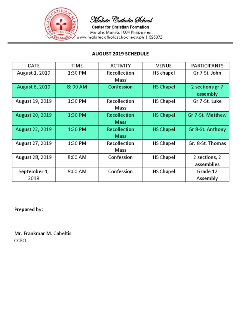 August 19, 2019 1:30 PM Recollection HS Chapel Gr 7-St. Luke