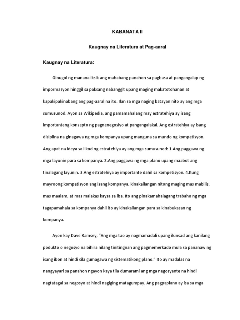 Kaugnay na Literatura at Pag-aaral