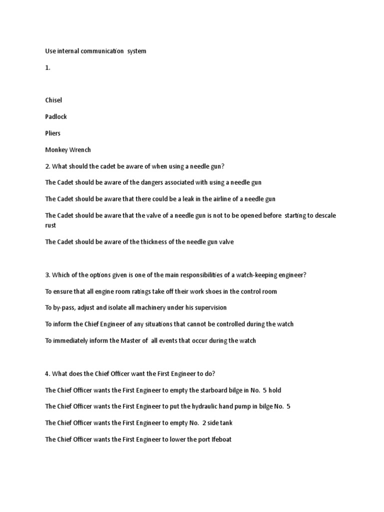 Engine room ratings forming part of an engine room watch should assist in efficient and safe watch-