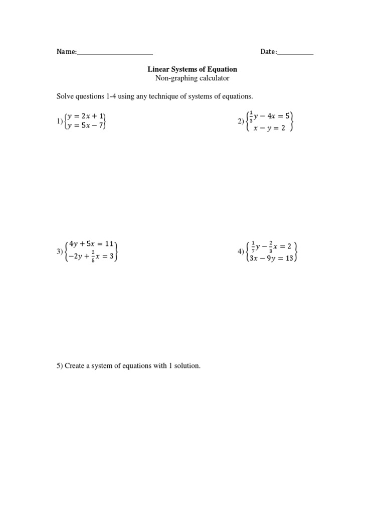 5) Create a system of equations with 1 solution.