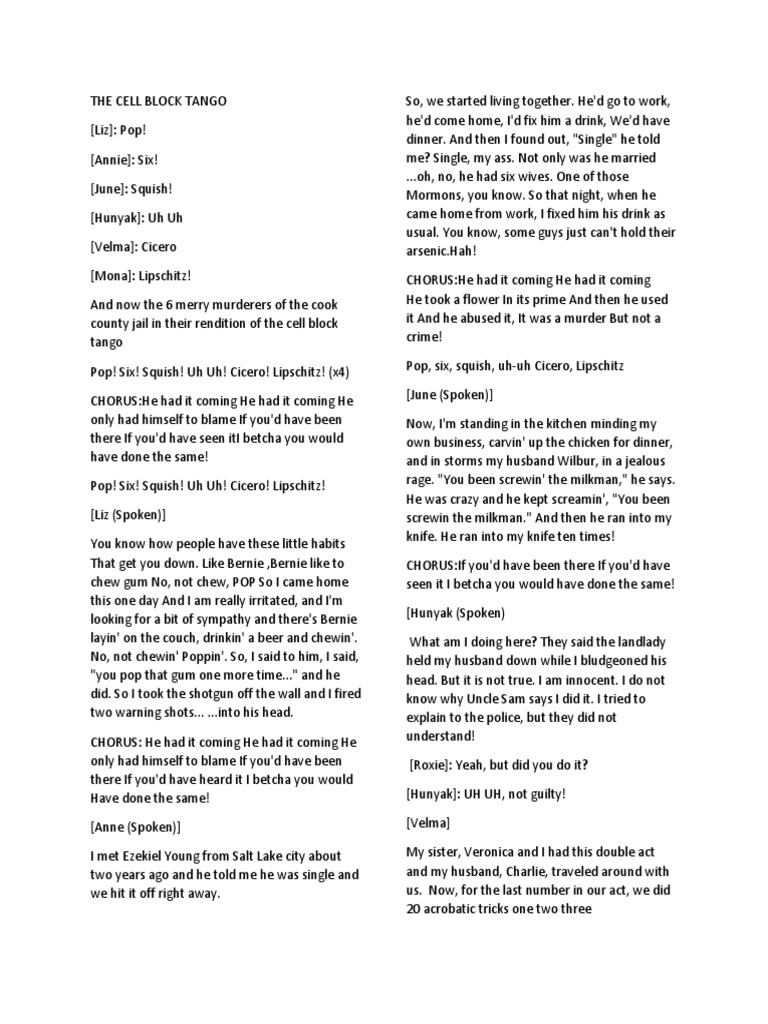 CHORUS:They had it coming They had it coming Velma: They had it comin'
