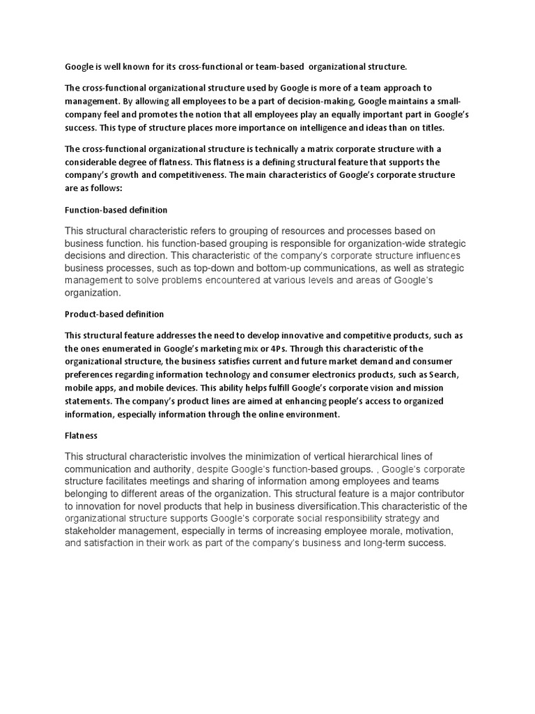 communication and authority, despite Google’s function-based groups. , Google’s corporate