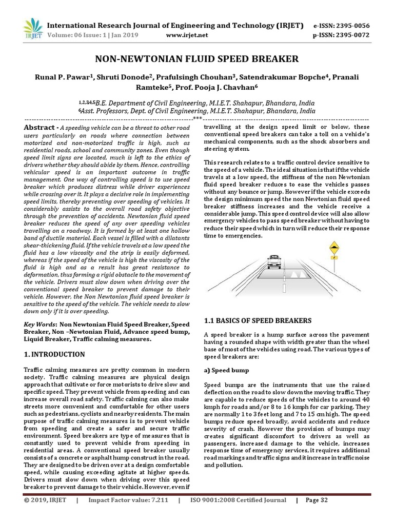 returns to its original shape. Thus, below the speed limit, The Non -Newtonian fluid speed breaker help in