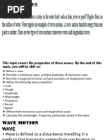 waves include; water waves, sound waves, and radio waves. Waves come in two different forms; a