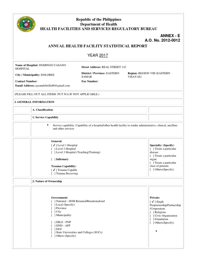 ANNUAL HEALTH FACILITY STATISTICAL REPORT