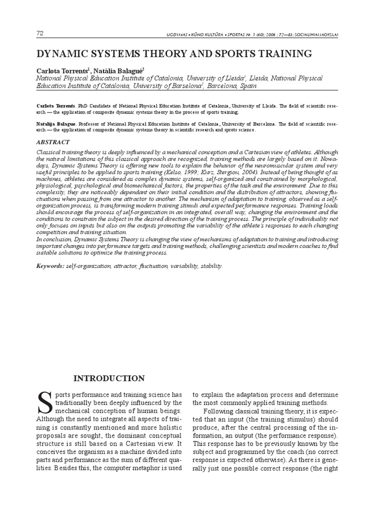 useful principles to be applied to sports training (Kelso, 1999; Kurz, Stergiou, 2004). Instead of being thought of as