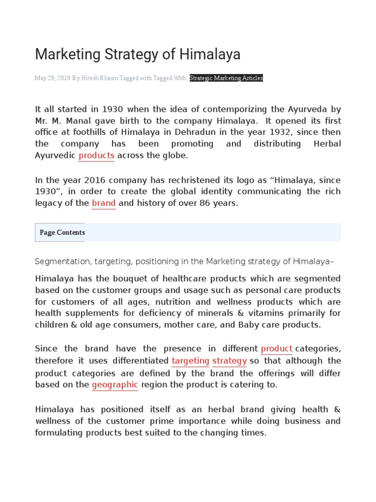 Segmentation, targeting, positioning in the Marketing strategy of Himalaya–