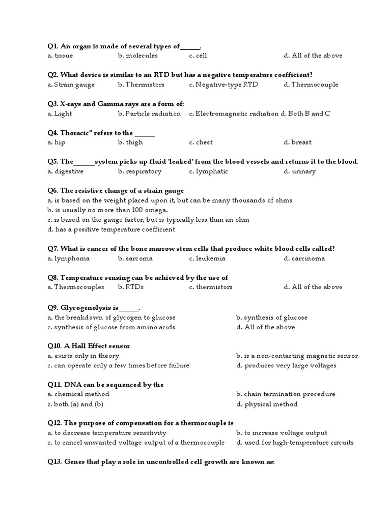 a. Strain gauge b. Thermistors c. Negative-type RTD d. Thermocouple