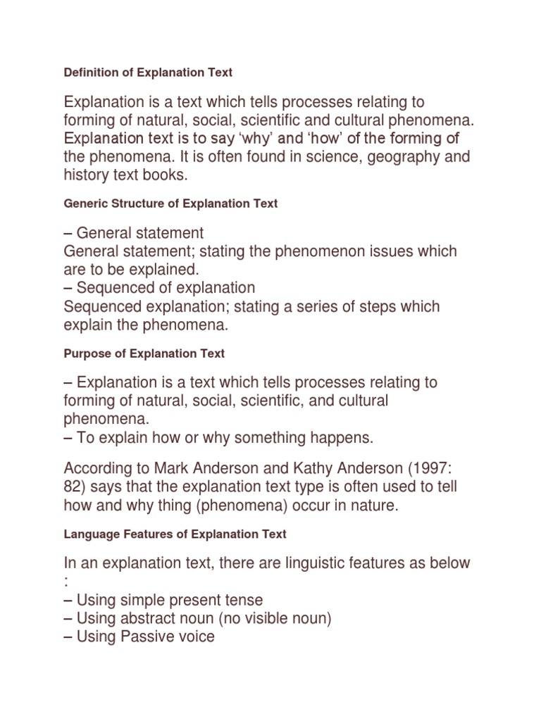 Explanation text is to say ‘why’ and ‘how’ of the forming of