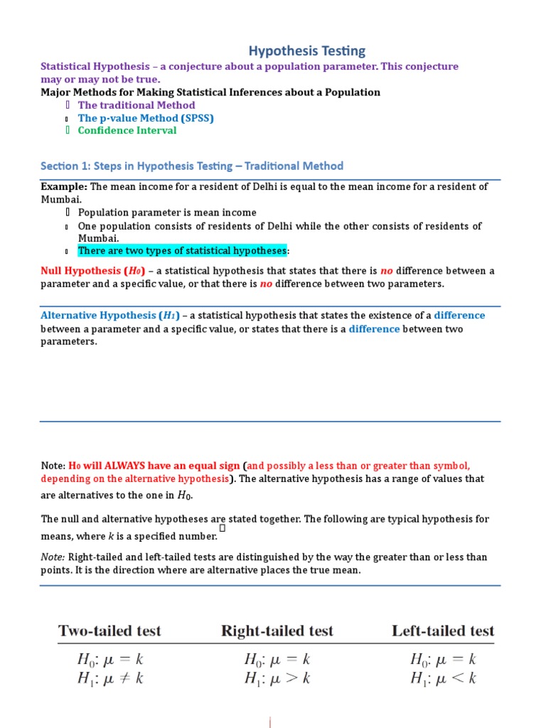 Section 1: Steps in Hypothesis Testing – Traditional Method