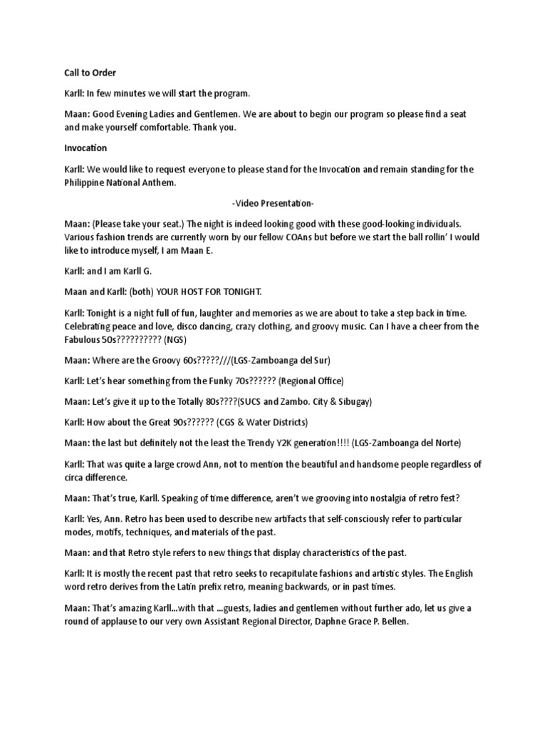 Maan: Good Evening Ladies and Gentlemen. We are about to begin our program so please find a seat