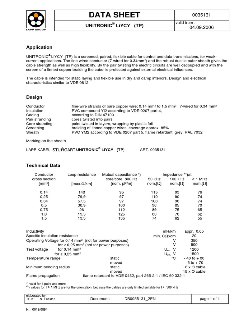 UNITRONIC® LiYCY (TP) 04.09.2006
