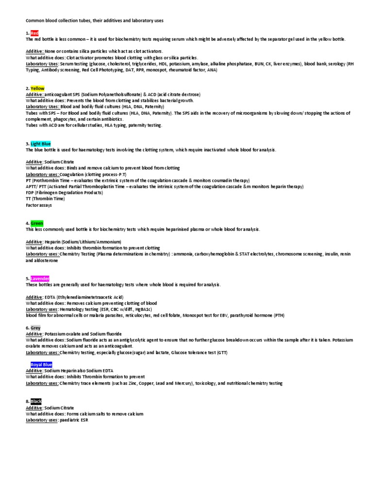 Tubes with ACD are for cellular studies, HLA typing, paternity testing.