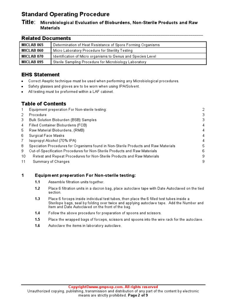 1 Equipment preperation For Non-sterile testing: 2