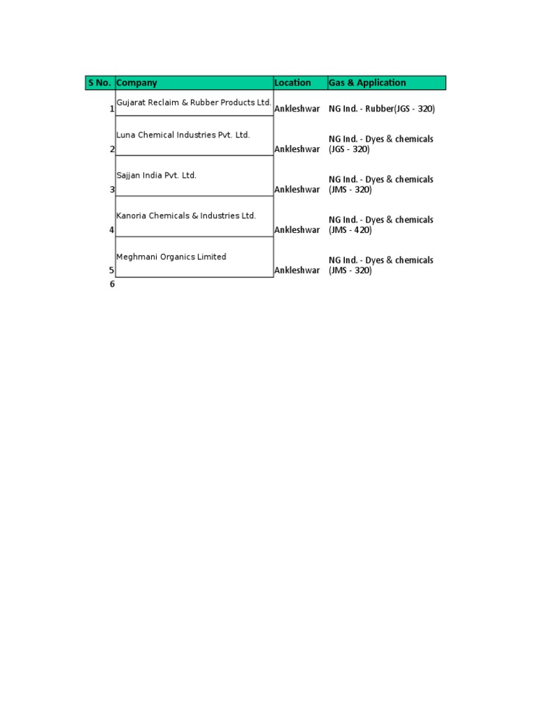 1 Gujarat Reclaim & Rubber Products Ltd. Ankleshwar JGS 320 1 NG Ind. - Rubber