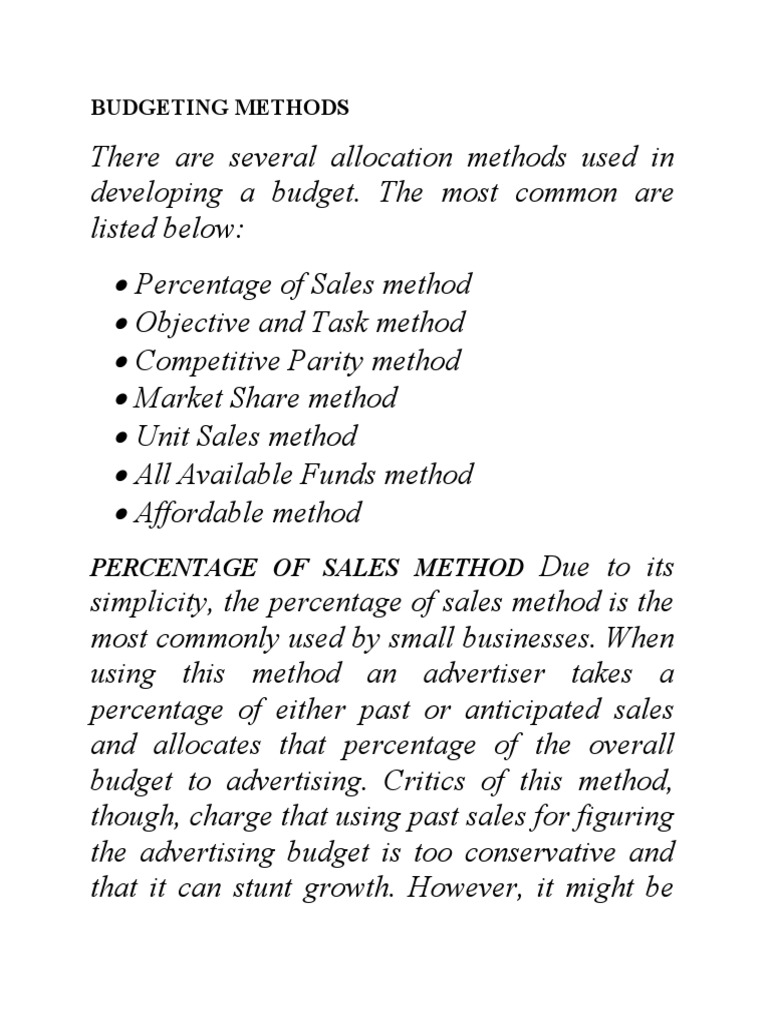 budget to advertising. Critics of this method,