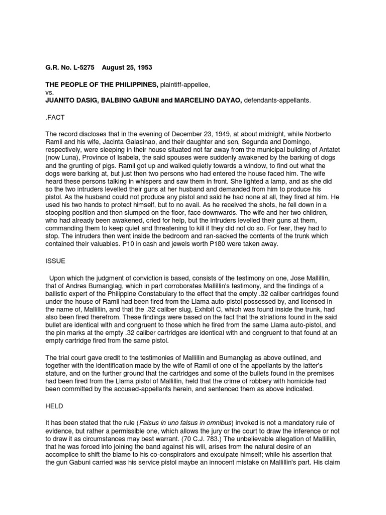 had been fired from the Llama pistol of Mallillin, held that the crime of robbery with homicide had