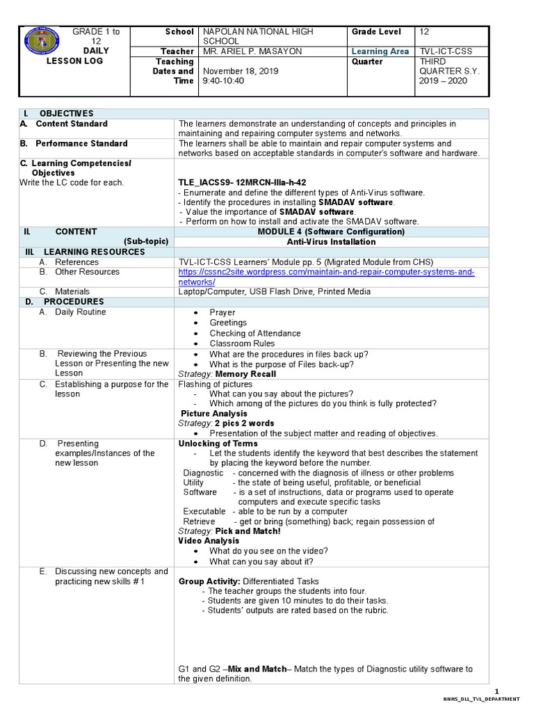 DAILY Teacher MR. ARIEL P. MASAYON Learning Area TVL-ICT-CSS