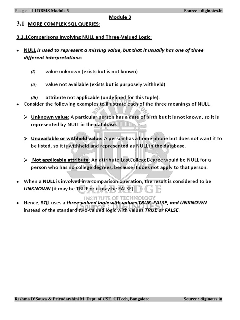 P a g e | 2 | DBMS Module 3 Source : diginotes.in