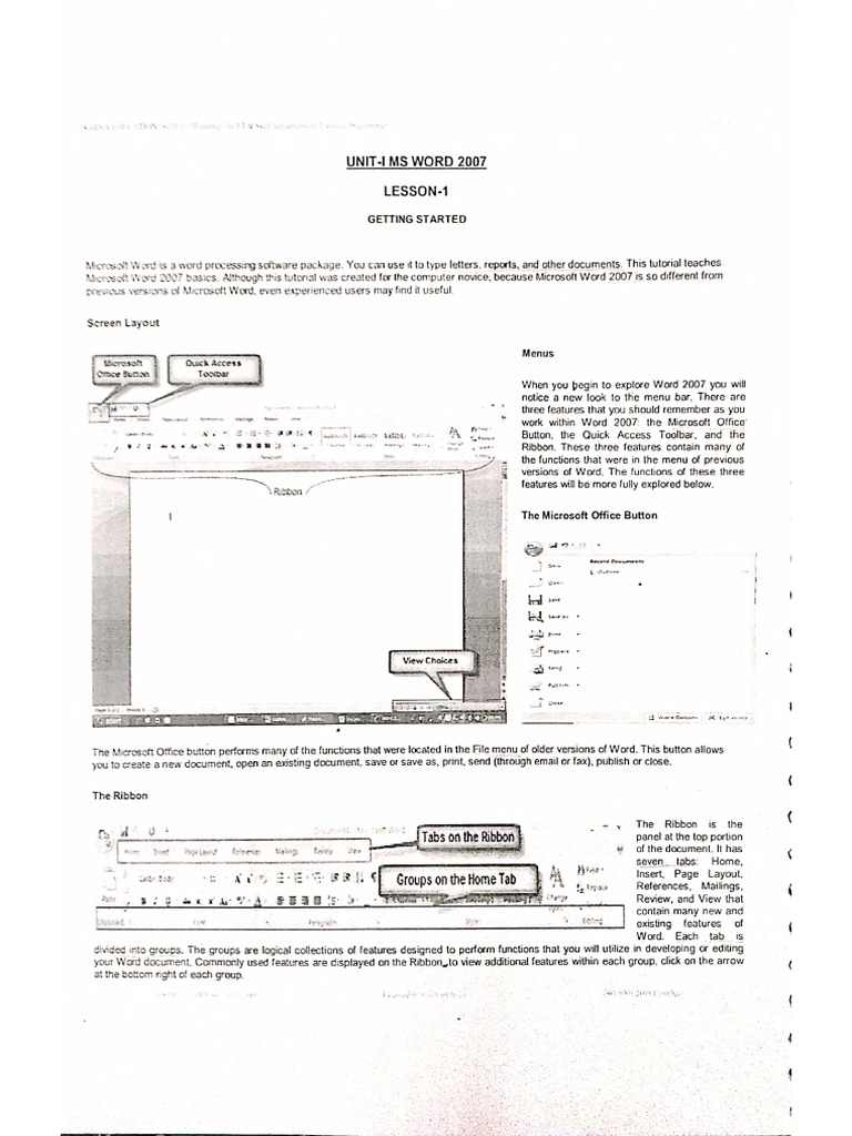 UNIT-1 MS WORD 2007