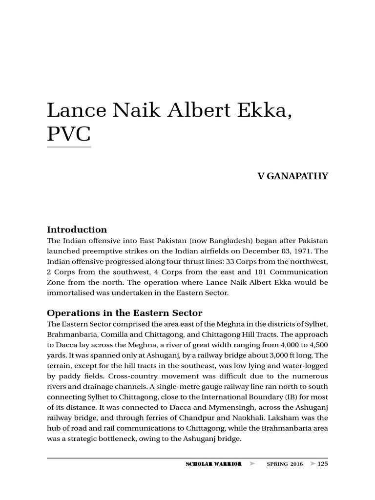 of gallantry, Lance Naik Albert Ekka was strongly recommended for the award