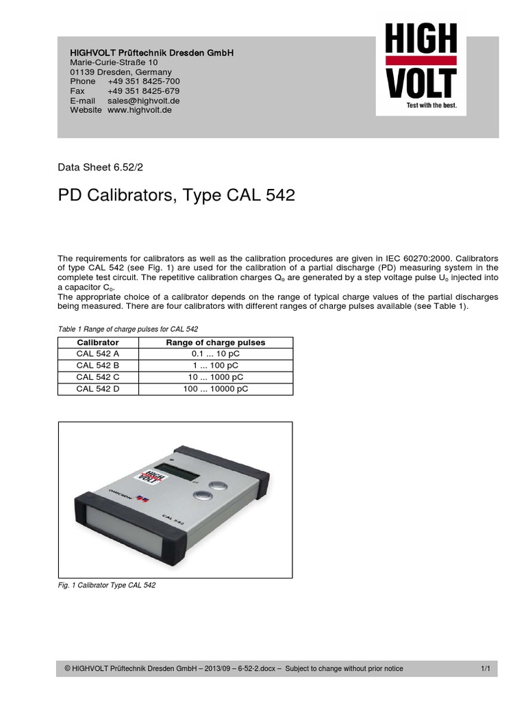 of type CAL 542 (see Fig. 1) are used for the calibration of a partial discharge (PD) measuring system in the