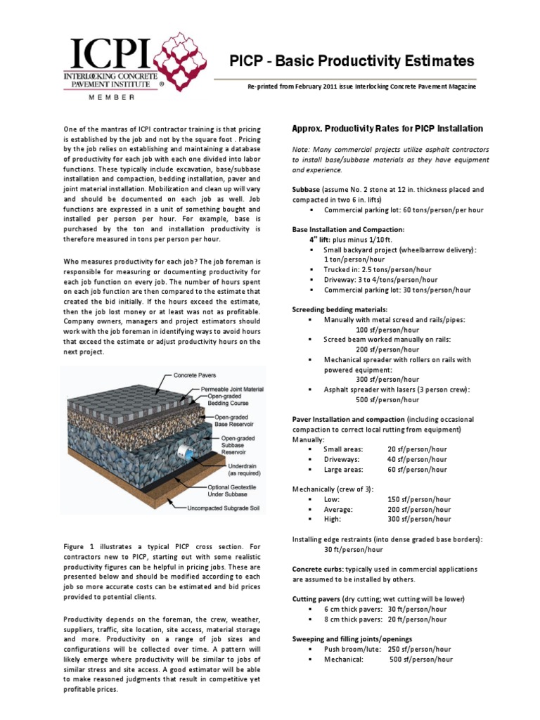 One of the mantras of ICPI contractor training is that pricing Approx. Productivity Rates for PICP Installation