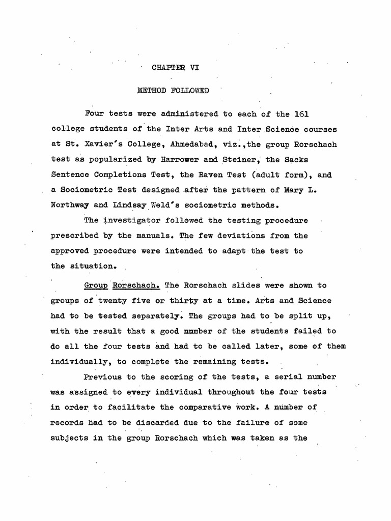 at St. Xavier's College, Ahmedahad, viz.,the group Rorschach