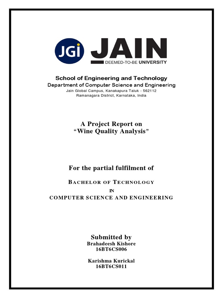 Engineering & Technology, JAIN (Deemed-to-be-University), Bangalore in partial fulfilment