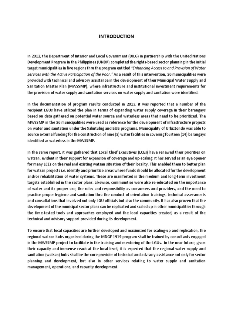 MWSSMP in the 36 municipalities were used as reference for the development of infrastructure projects