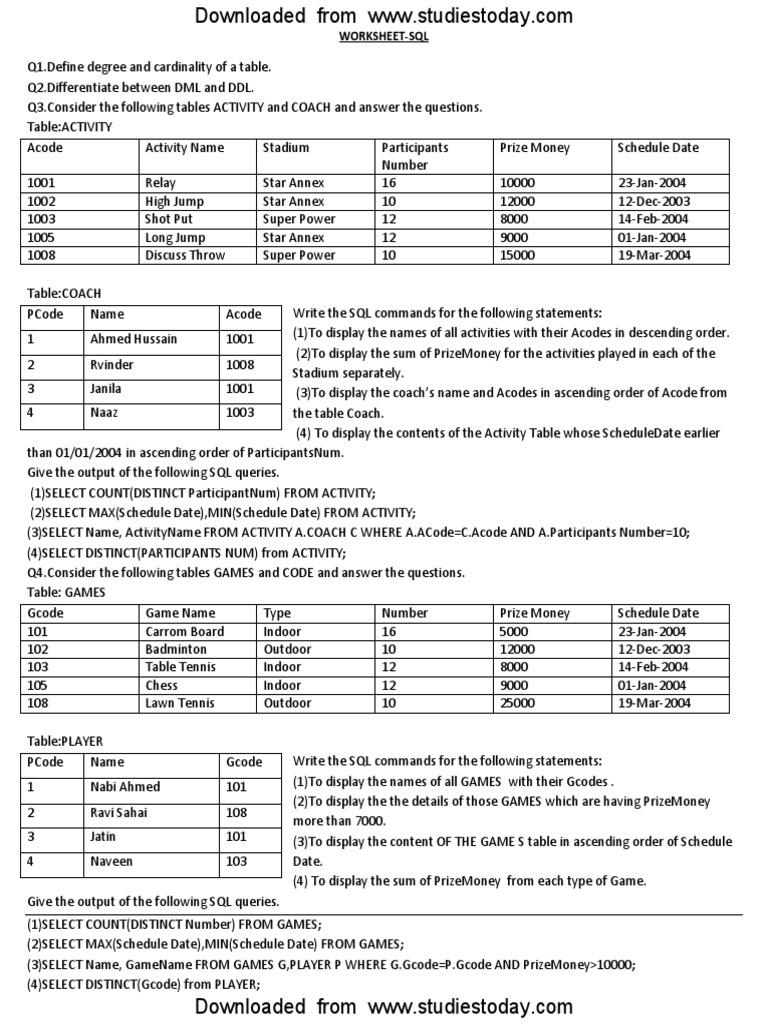 Q3.Consider the following tables ACTIVITY and COACH and answer the questions.