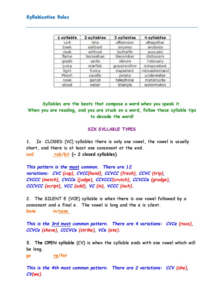 When you are reading, and you are stuck on a word, follow these syllable tips